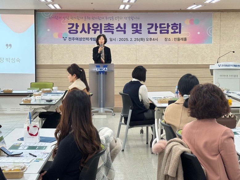 [세계타임즈 = 신승민 기자] 전주여성인력개발센터(관장 박성숙)는 25일 센터 4층 민들레홀에서 국비지원과정을 포함한 직업교육훈련의 강사 위촉식 및 간담회를 개최했다.