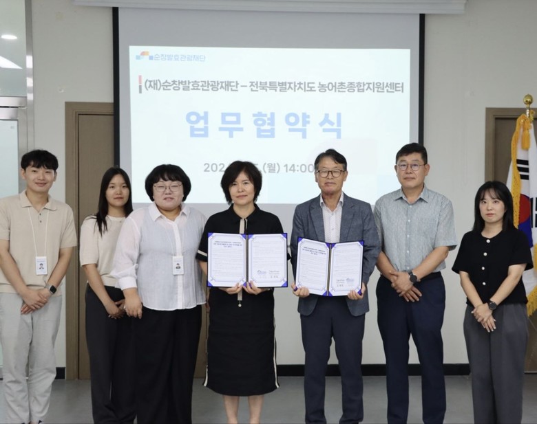 [순창군=세계타임즈 신승민 기자] 전북특별자치도농어촌종합지원센터(이하 센터)와 순창발효관광재단(이하 재단)은 8월 5일, 순창군의 인구 유입과 전북특별자치도 내 귀농‧귀촌 활성화를 위해 재단 2층 회의실에서 업무협약을 체결했다.