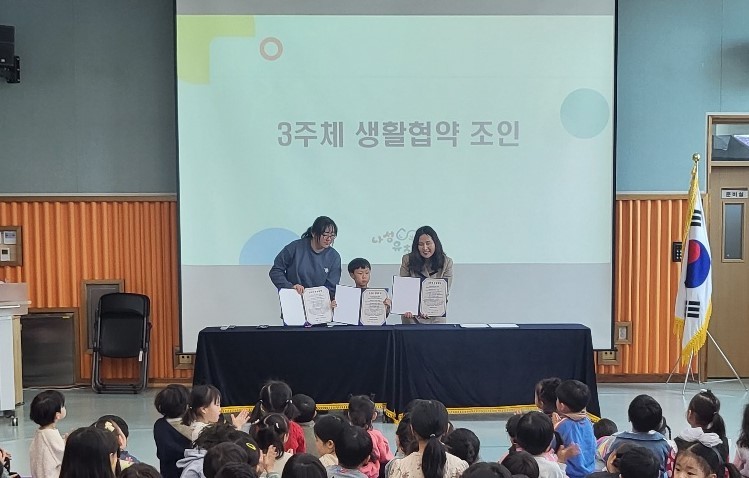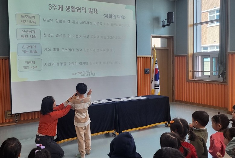 [세종 세계타임즈=이채봉 기자] 나성유치원(원장 이옥순, 이하 나성유)에서는 지난 28일 유아, 교직원, 학부모가 함께 참여한 생활협약 선포식을 열었다.