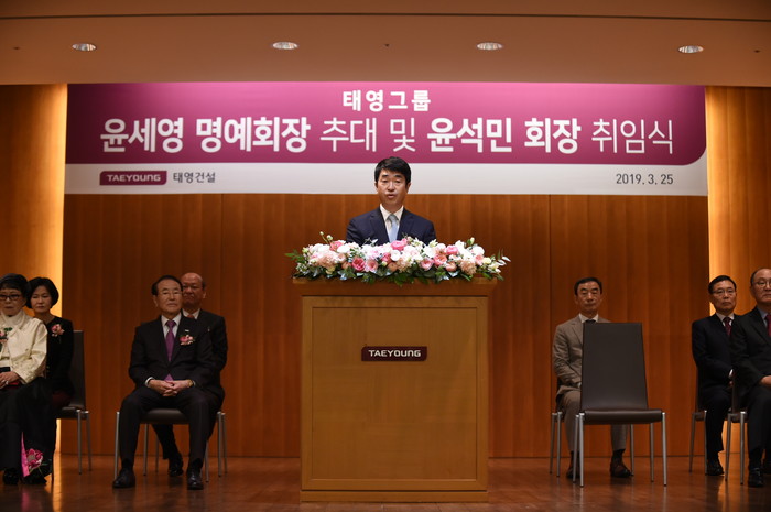 태영그룹 윤석민 회장은 1988년 1월 태영 기획담당이사로 입사하여 2004년 3월 태영건설과 태영인더스트리의 사장을 역임하였다. 2008년 3월 태영건설과 태영인더스트리 부회장, 2009년 2월 SBS미디어홀딩스 부회장에 올랐으며, 2019년 3월 25일 태영그룹 회장으로 취임하였다.