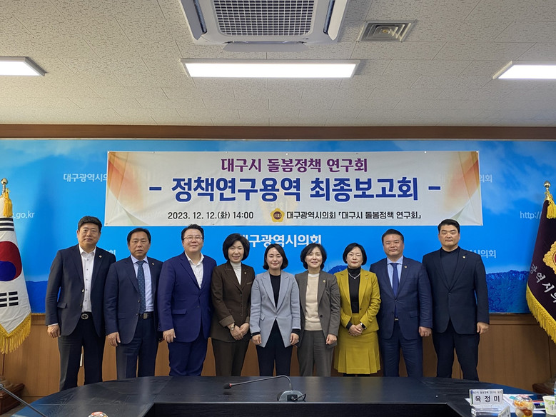 ‘대구시 돌봄 정책연구회’는 대구시의회 의원연구단체로 돌봄 사각지대 해소를 위한 정책 등을 연구하고, 제도적 개선방안을 모색하고자 12명의 의원으로 결성됐다.