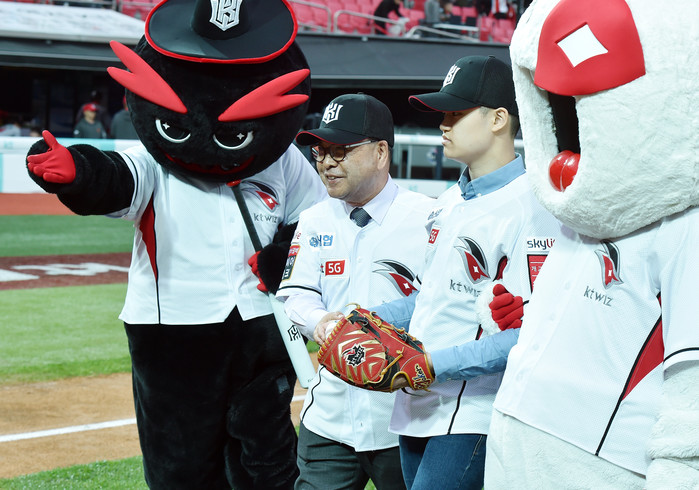 [경기도=세계타임즈 이영진 기자] 이재정 경기도교육감이 26일 수원 KT위즈파크에서 프로야구 경기(KT위즈 대 SK와이번즈)에 앞서 학생(이준희, 아름학교 3학년) 시구에 시타를 하고 있다.