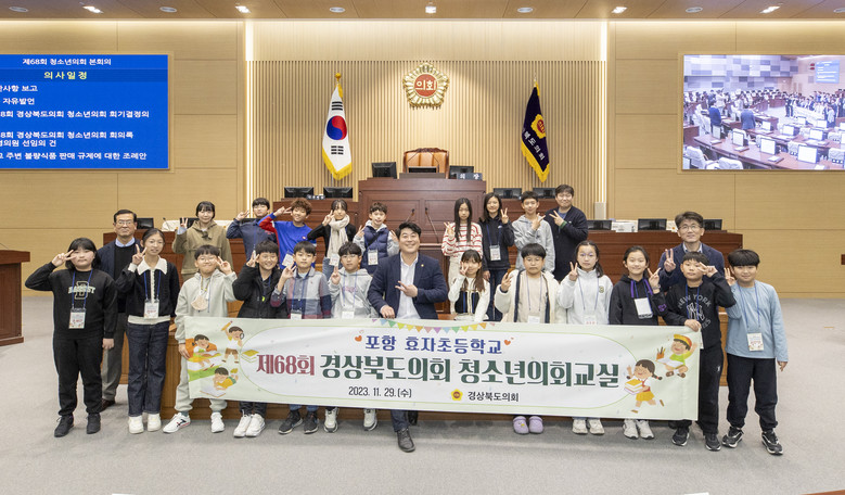 포항 효자초등학교 학생 20여명이 참여한 청소년의회교실에는 손희권 도의원(포항)이 직접 학생들을 맞이하고 격려하였으며, 학생들은 스스로 작성한 3분 자유발언과 조례안, 건의안에 대해 의장 및 의원 등 각자의 역할을 맡아 도의회 본회의 의사진행 순서에 따라 제안설명과 질의· 찬반토론 등을 거쳐 표결까지 직접 체험해 보는 시간을 가졌다.