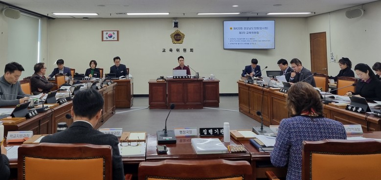 [경남 세계타임즈=최성룡 기자] 10일 오전 도교육청 행정국에 대한 2025년 업무보고에서 교육위원들은 한목소리로 교육청 공사‧계약에서 지역업체의 우선적 배려와 함께 현실을 충분히 반영하고 있지 못하고 있는 공동학구제의 운영 방안 개선, 마을 주민 중심의 폐교재산 활용 방안 등을 논의하며 교육청이 보다 현장의 목소리에 귀 기울여줄 것을 당부했다.