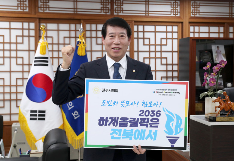 [전주시=세계타임즈 신승민 기자] 20일 전주시의회 남관우 의장이 2036년 하계올림픽 전북 유치를 기원하는 'GBCH 챌린지'에 동참했다.