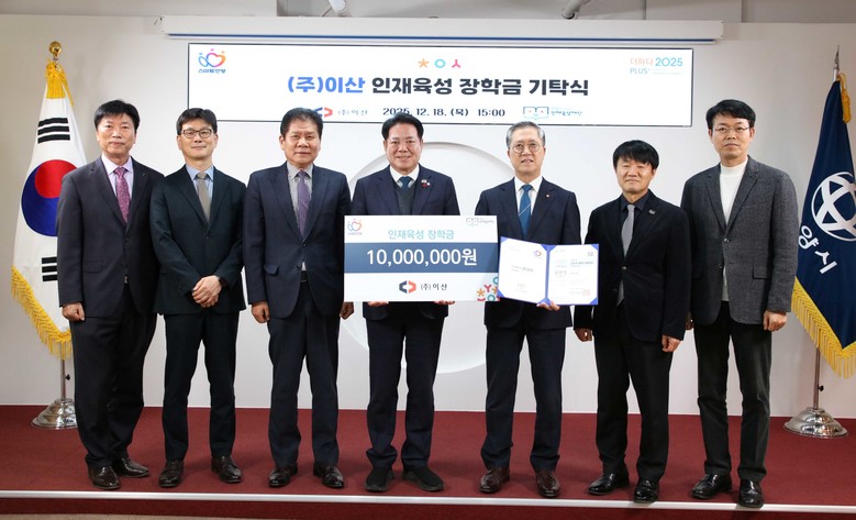 한광두 ㈜이산 사장은 “지역사회로부터 받은 사랑과 성원에 보답하고, 미래세대의 건강한 성장과 꿈을 응원하고자 장학금을 기탁하게 되었다”며, “이 장학금이 학생들에게 든든한 디딤돌이 되길 바란다”고 밝혔다.