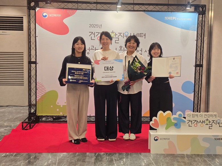 대덕구 남부건강생활지원센터는 ‘2025년 건강생활지원센터 성과 평가’에서 ‘대상’을 수상하며 3년 연속 최우수기관으로 선정됐다.