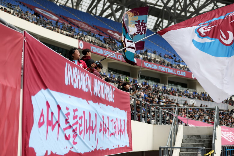 | ▲용인FC 관중석의 홈팬들의 열띤 응원 모습.(사진=용인FC) |