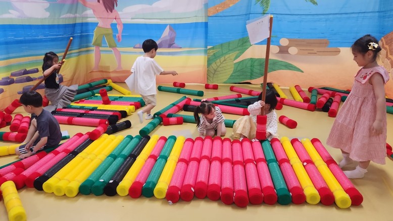 유아들은 뗏목에 대한 경험을 이야기 나누고 안전 수칙을 알아본 후 친구들과 협력하여 뗏목을 만들었으며 깃발을 세우고 상상력을 발휘하여 놀이하였다. 뗏목은 여객선이 되었다가 낚싯배가 되었으며 이순신의 거북선으로 변하였다. 또한 각자의 작은 뗏목이 합쳐지고 창의력이 더해져 큰 뗏목으로 만들어졌다.