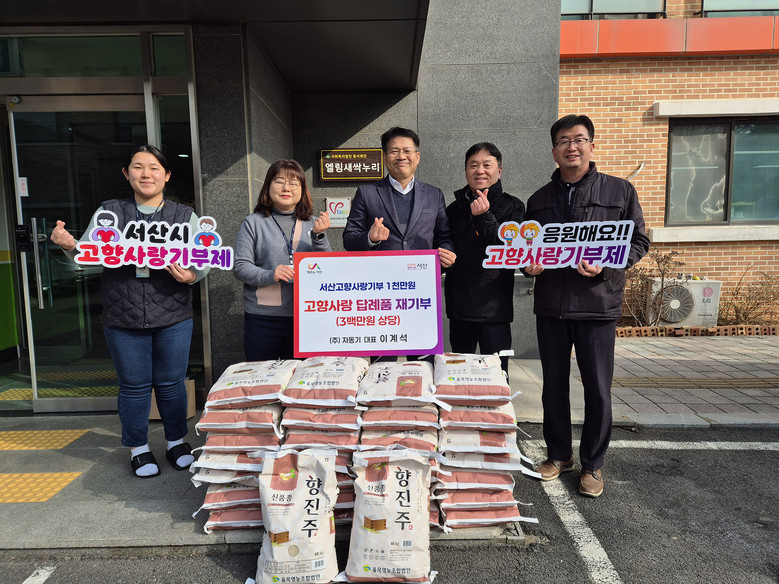 금년에는 고향사랑기부금 1천만 원을 기부하고 그 답례품 3백만 원 상당을 어린이 보육시설에는 쌀 30포, 한부모 가정 21세대에는 서산한우세트 각 1세트를 전달했다.