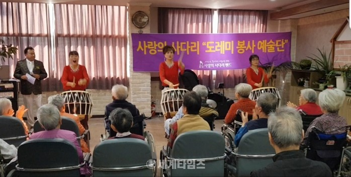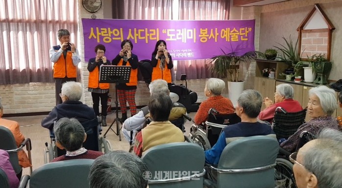 [대전=세계타임즈 이장성 기자] 다양한 봉사활동을 하고 있는 5천명 봉사단체 사랑의 사다리 밴드(리더 이정제)의 도레미 봉사예술단(단장 안경헌)은 18일 오후 2시,동구 판암동에 위치한 플래티늄 요양원에서 50여분의 어르신들께 위문공연 봉사로 사회적 효행을 실천하였다.