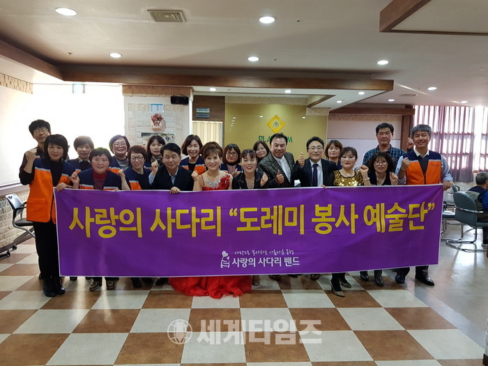 사랑의 사다리 밴드의 도레미 봉사 예술단은 매월 1회~2회씩 노인요양원등에서 위문공연봉사를 통해서 사회적 효행을 실천하고 있다.