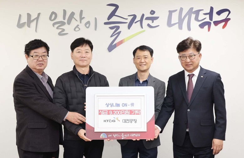 최충규 대덕구청장은 “뜻깊은 나눔을 실천해주신 KT&G 대전공장 임직원 여러분께 깊이 감사드린다”며 “기탁된 성금이 취약계층의 겨울나기에 실질적인 도움이 되도록 세심하게 지원하겠다”고 말했다.