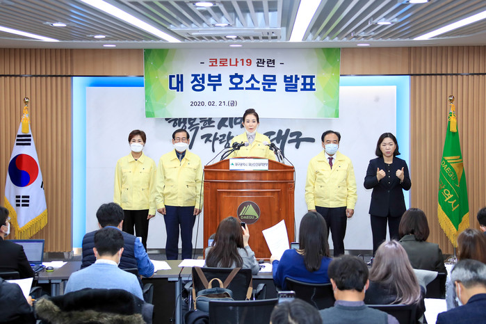 배지숙 대구광역시의장을 비롯한 시의원들은 이날 호소문에서 대구광역시와 대구시의회, 대구시민 모두가 가능한 역량을 모두 동원하여 ‘코로나19’ 확산을 방지하기 위해 24시간 비상체제로 고군분투하고 있으나 빠르게 확산되고 있어 절박하고 간절한 마음으로 정부의 적극적인 지원을 호소했다.