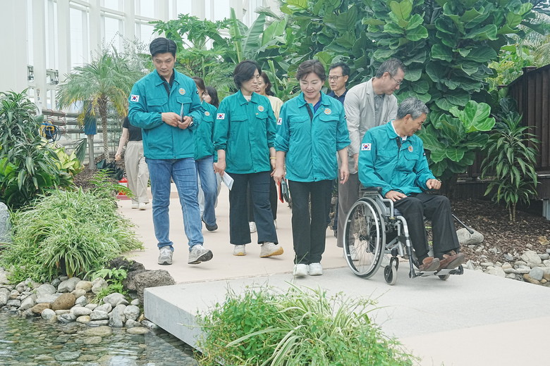 이어, 위원들은 새롭게 조직개편된 수목원·정원사업소로 자리를 옮겨 사업소의 운영 현황을 보고받고 전시온실과 한국정원을 비롯한 수목원 조성 현장을 둘러본 뒤 향후 계획 및 활용방안에 대해 소통하는 시간을 가졌다.