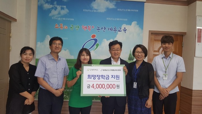 문일규 충청남도논산계룡교육지원청 교육장은 “굿네이버스에서 지급된 장학금이 어려운 가정환경 속에서 열심히 생활하고 있는 학생들이 꿈을 펼치는데 큰 도움이 될 수 있을 것이다”며 감사의 인사를 전했다.