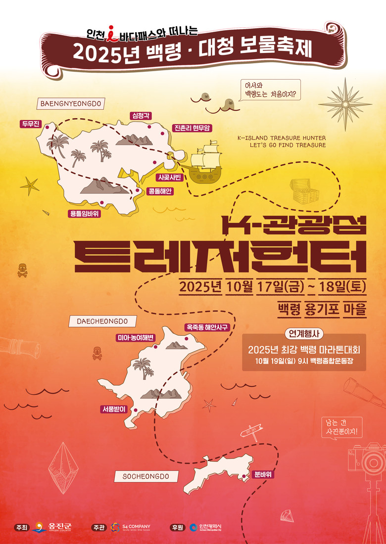 한편, K-관광섬 홍보를 위해 추진되는 k-관광섬 육성사업 일환인 최강 백령마라톤 대회는 10월 19(일)에 백령면 종합운동장에서 오전 9시에 실시할 예정이다.