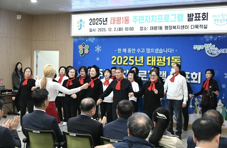 [중구 세계타임즈=이채봉 기자] 대전 중구 태평1동(동장 박상롱)은 2일 태평1동 주민자치위원회(위원장 이병주) 주관으로 ‘2025년 태평1동 주민자치프로그램 발표회’를 개최했다고 밝혔다.
