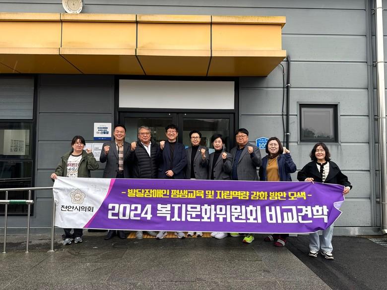 [천안시 세계타임즈=백택기 기자] 천안시의회(의장 김행금) 복지문화위원회(위원장 이종만)는 10월 31일부터 11월 1일까지 군산시 일원에서 ‘발달장애인 평생교육 및 자립역량강화 방안 모색’을 주제로 비교견학을 실시했다.