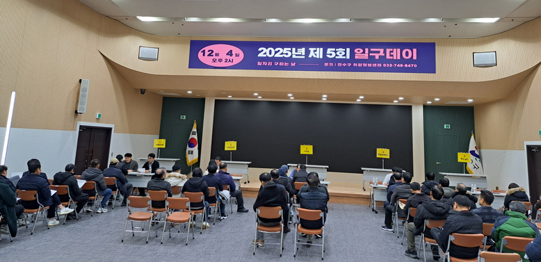 [연수구 세계타임즈=심하린 기자] 연수구(구청장 이재호)는 지난 4일 구청 대회의실에서 ‘구인·구직자가 만나는 현장! 2025년 제5회 일구데이’를 개최했다.