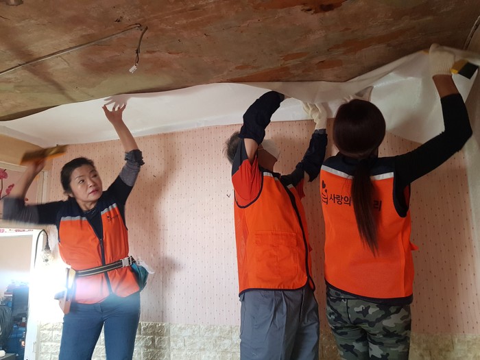 도배 봉사에 필요한 재료 외 재능을 후원한 장인들 도배학원 김정자 원장은 “오늘 수해가정을 위해서 쾌적한 주건환경을 만들어 드려서 행복과 보람을 느낀다.”고 말했다.
