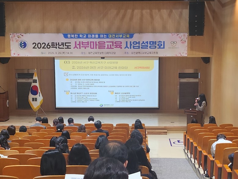 [대전 세계타임즈=이채봉 기자] 대전서부교육지원청은 3월 26일 대전교육정보원에서 ‘2026학년도 서부마을교육 사업설명회’를 개최했다고 밝혔다.