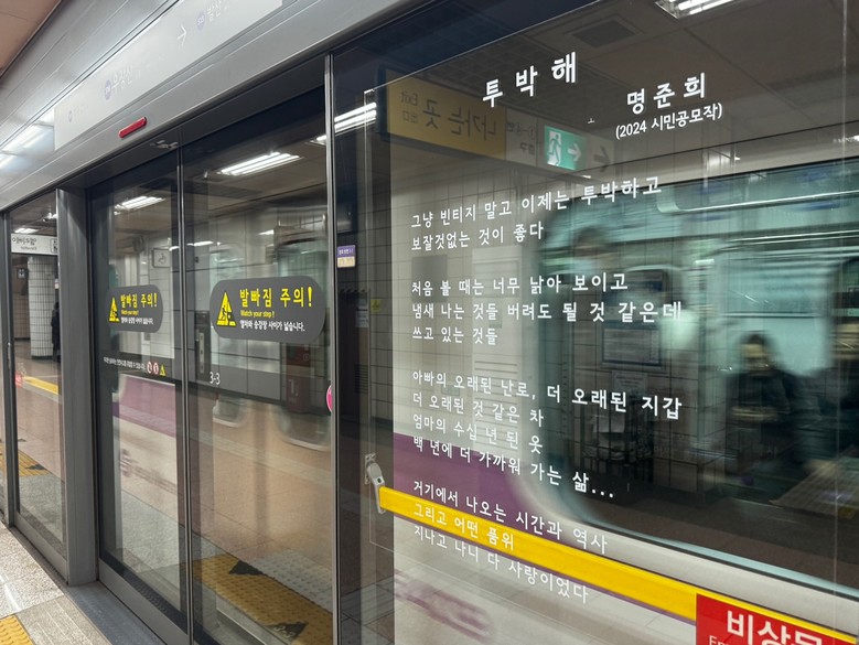 특히, 「2024년 서울時 지하철」 공모전에 당선된 “투박해”라는 시는 7호선 강남구청역 장암 방면과 신대방 삼거리역 온수 방면에 설치되어, 공간을 이용하는 시민들에게 일상에서 벗어나 마음의 여유를 느낄 수 있는 기회를 제공하고 있다.