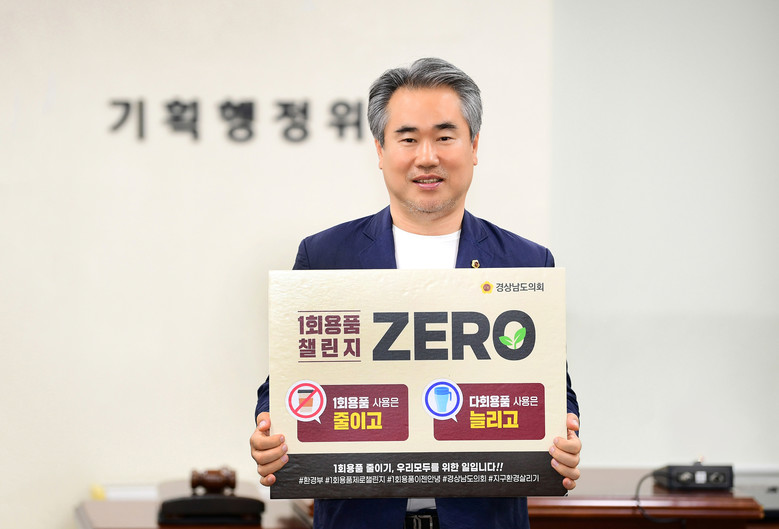 [경남 세계타임즈=최성룡 기자] 경남도의회 박준 위원장(창원4, 국민의힘)은 지난 5월 1일 일상생활 속에서 일회용품 사용을 줄이기 위한 실천을 약속하는 ‘일회용품 제로 챌린지’에 동참했다.