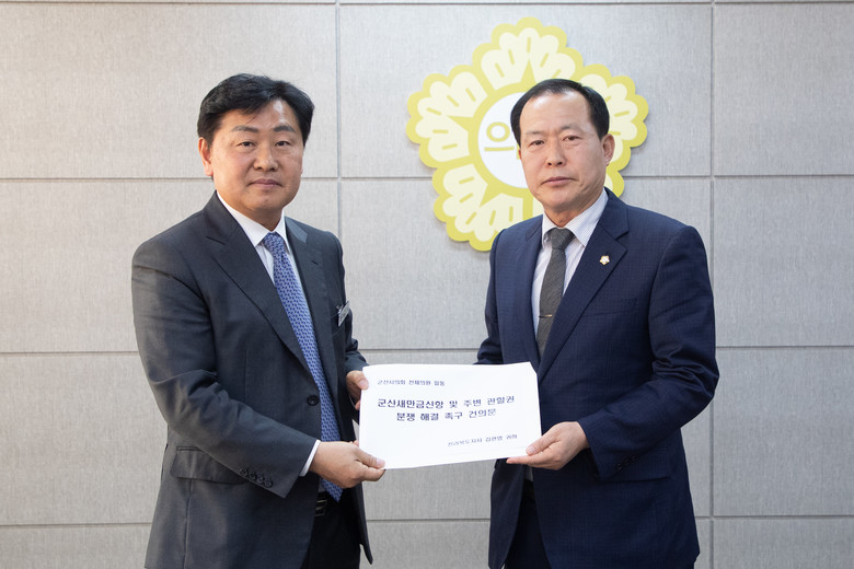 군산시의회는 이날 도지사 면담과 함께 ‘군산새만금신항 및 주변 관할권 분쟁해결 촉구’건의문을 전라북도에 전달했다.