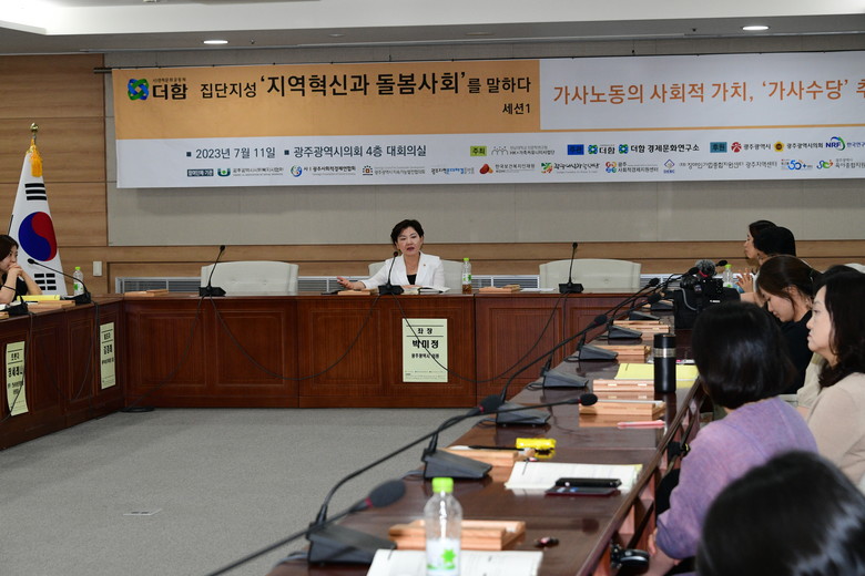 [광주 세계타임즈=손권일 기자] 광주광역시의회 박미정 의원과 사)경제문화공동체‘더함’이 함께 11일 오후‘집단지성 “지역혁신과 돌봄사회”를 말하다’라는 주제로 정책포럼을 개최했다.