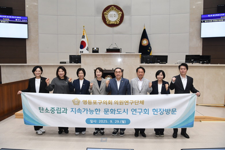 [영등포구 세계타임즈=이장성 기자] 영등포구의회 의원연구단체 '탄소중립과 지속가능한 문화도시 연구회'(이하 '연구회')는 29일 오전 10시 용인시의회를 현장방문하여 간담회를 개최했다.
