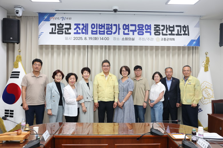 고흥군의회 류제동 의장은 “이번 중간보고회를 통해 입법평가의 방향성과 필요성을 다시 한번 확인했다”며, “군민 생활에 실질적으로 도움이 되는 조례 정비가 이루어질 수 있도록 의회 차원에서 적극 지원하겠다”고 밝혔다.