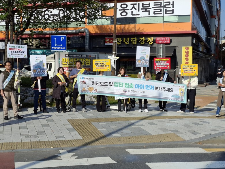 [서구 세계타임즈=이채봉 기자] 대전 서구(구청장 서철모)는 큰마을네거리 일대에서 한국교통안전공단, 안전생활실천시민연합 등 30여 명이 참여한 가운데 교통안전 합동 캠페인 및 불법 이륜차 ·개인형 이동장치(PM) 단속을 진행했다고 7일 전했다.