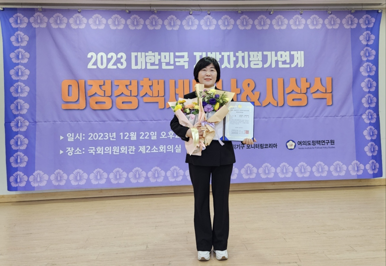 22일 오후 2시 국회의원회관 제2소회의실에서 개최된 시상식에서 배영숙 시의원은 광역의회 의원 대상 수상자 16명 중 3위의 평가점수를 받아 우수한 의정활동으로 지방자치 활성화에 지대한 기여도가 있음을 인정받았다.