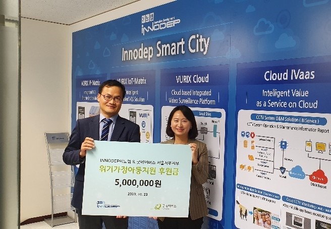 ㈜이노뎁은 2016년부터 굿네이버스를 통해 저소득 가정 아동의 급식지원, 문화체험 활동을 후원하며 활발하게 사회공헌 활동을 펼치고 있다. 올해는 이노뎁 스마트시티 컨퍼런스에서 진행된 기부형 토크콘서트를 통해 마련된 강연 수익금 전액 및 기업후원금을 굿네이버스 서울서부지부에 전달하였다. 굿네이버스 서울서부지부가 전달받은 후원금 5백만 원은 강서구, 양천구 지역 내 위기가정아동을 위한 경제적 지원 및 심리치료비용으로 사용될 계획이다.
