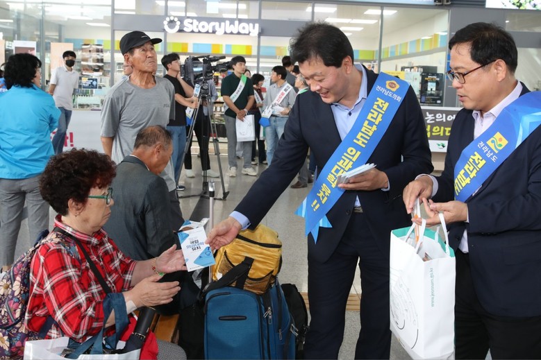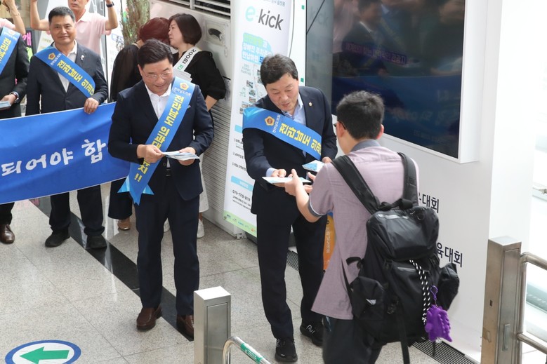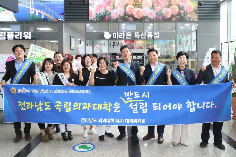 [전남 세계타임즈=우덕현 기자] 전라남도의회 서동욱 의장은 27일 순천역 일원에서 추석 명절을 맞아 고향에 방문한 귀성객들을 대상으로 전남 국립 의과대학 유치 홍보캠페인에 나섰다. 전남도의회 ‘전라남도 의과대학 유치 대책위원회’를 주축으로 진행된 이날 캠페인은 순천역과 목포역 두 곳에서 진행됐으며 순천.목포시의회 의원과 사회단체 등 170여 명이 동참했다.