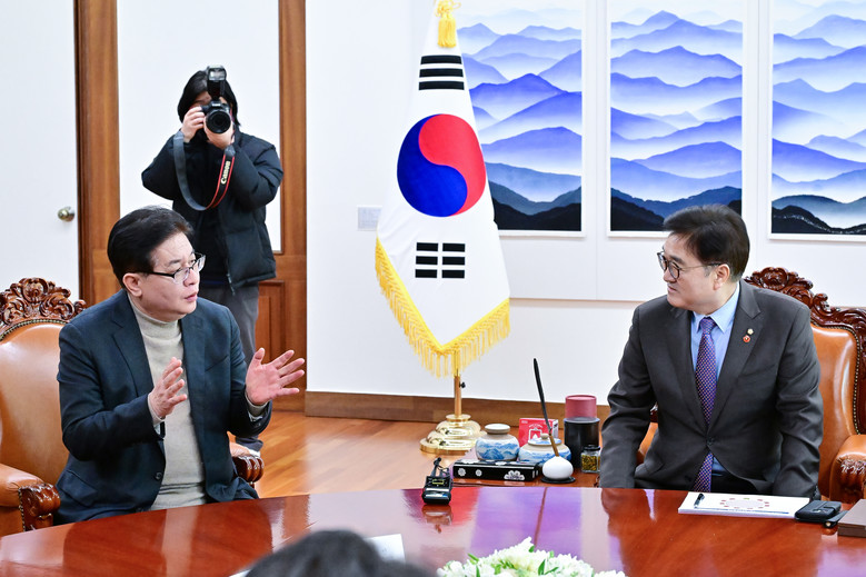 [부산 세계타임즈=이용우 기자] 안성민 대한민국시도의회의장협의회(이하 협의회) 회장과 회원들은 2025년 1월 23일 국회 의장실을 방문하여 오찬 간담회를 가졌다.