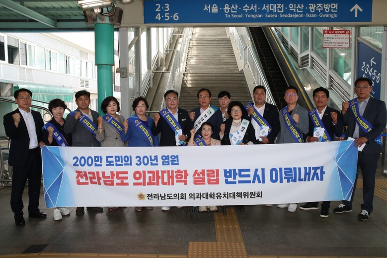 [전남 세계타임즈=우덕현 기자] 전라남도의회(의장 서동욱)는 27일 목포역과 순천역 일원에서 추석 명절 귀성객 맞이 국립 의과대학 유치 홍보캠페인에 나섰다.