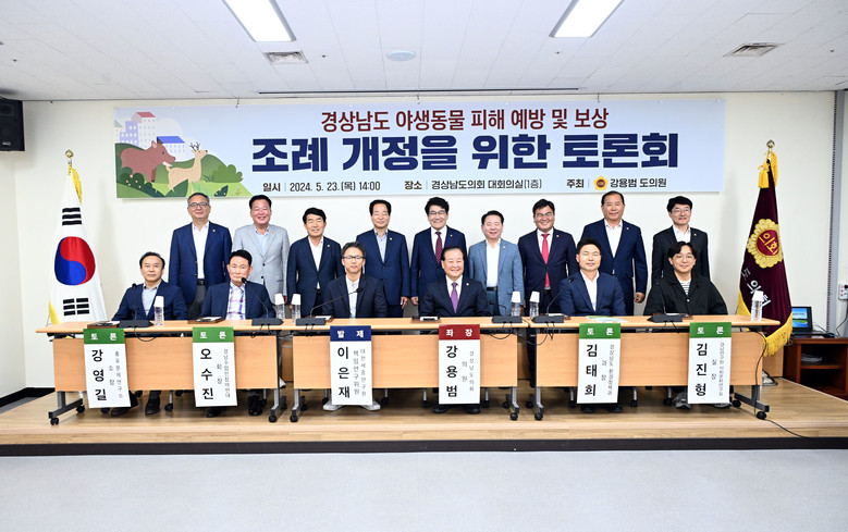 [경남 세계타임즈=최성룡 기자] 경남도의회 강용범 의원(국민의힘, 창원8)은 23일 오후 도의회 대회의실에서 「경상남도 야생동물 피해 예방 및 보상 조례」 개정 토론회를 개최했다.