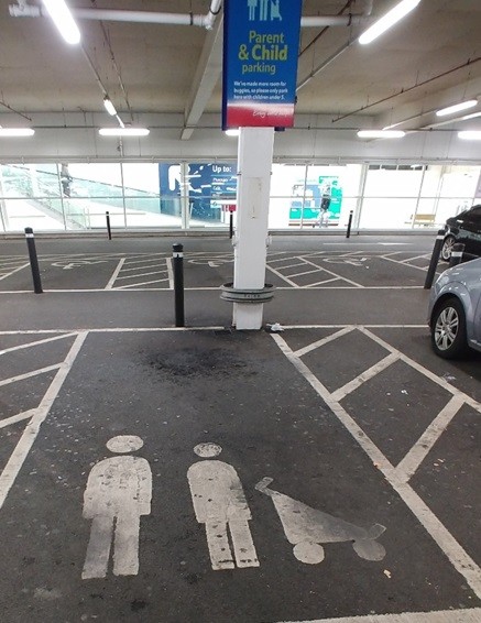 < 영국 버밍엄시 대형마트의 유아동승 전용 주차장>
