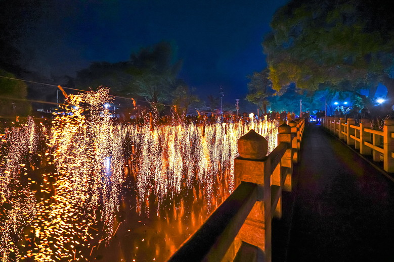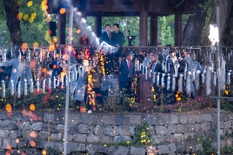 “와…” “아름답다…” 낙화봉에서 불꽃이 떨어지기 시작하자 곳곳에서 일제히 탄성이 새어나왔다. 불꽃이 흩날릴 때마다 보는 이들의 마음속에도 하나씩 환한 불이 켜지는 아름다운 순간이다.