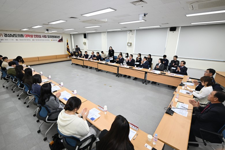 [경남 세계타임즈=최성룡 기자] 경상남도의회가 7일 제2기 대학생 인턴십 사업 오리엔테이션을 개최하고 의회·대학·인턴(학생) 간 3자 협약을 체결하며 사업의 본격적인 착수를 알렸다. 이번 인턴십 사업은 도내 지역대학과의 교류·협력을 통해 의원들의 정책활동을 지원하고, 대학생들에게 의회 체험 및 진로탐색 기회를 제공하는 것을 목적으로 한다.