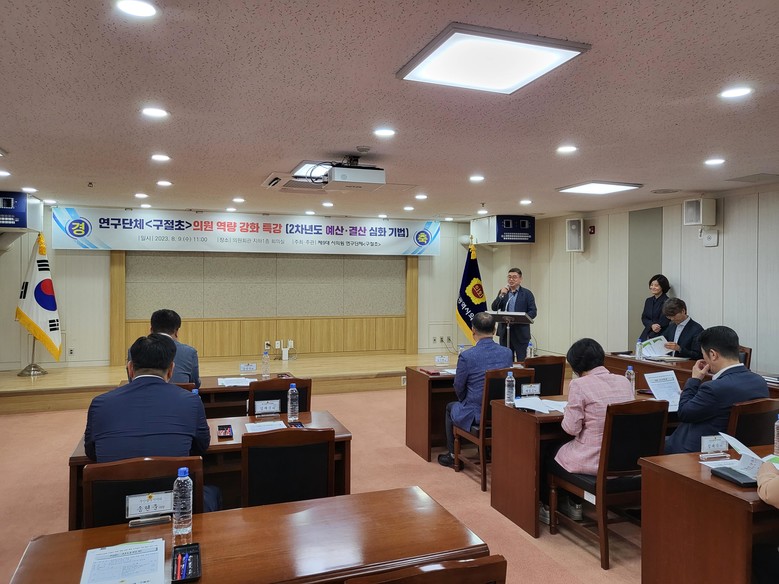 [부산 세계타임즈=이용우 기자] 제9대 부산광역시의회 의원연구단체‘구절초’(구대 절친 초선)에서 소속 의원 역량 강화를 위한‘2차년도 예산·결산 심사 기법’에 대한 강의를 개최했다.