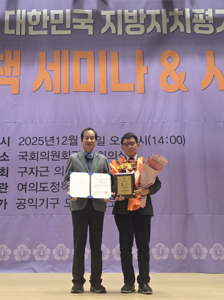 정광섭 부의장은 “2년 연속 대상 수상은 개인의 성과라기보다, 현장의 목소리를 함께 만들어주신 도민 여러분과 동료 의원들의 협력이 있었기에 가능했다”며 “앞으로도 초심을 잃지 않고, 도민의 삶을 바꾸는 실천 중심의 의정활동으로 충남 발전에 기여하겠다”고 수상 소감을 밝혔다.