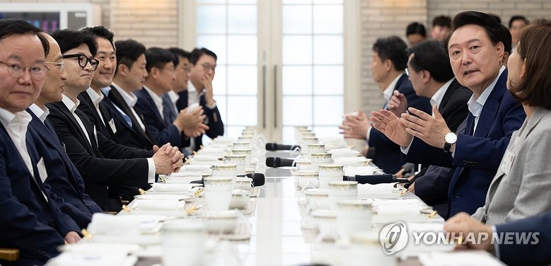 윤석열 대통령, 국민의힘 신임 지도부 및 당대표 후보 출마자들과 만찬