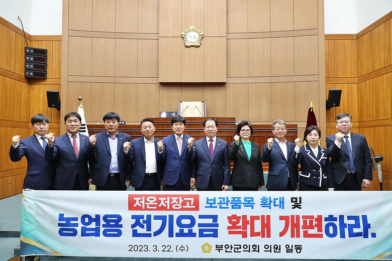 더불어, 이용님 의원이 대표발의한‘농업용 저온저장고 사용에 대한 전기요금 적용기준 확대 촉구 건의안’을 채택하여 의회에서는 저온저장고 사용에 대한 보관 품목의 전향적인 확대 및 제도개선을 강력하게 촉구하였다.