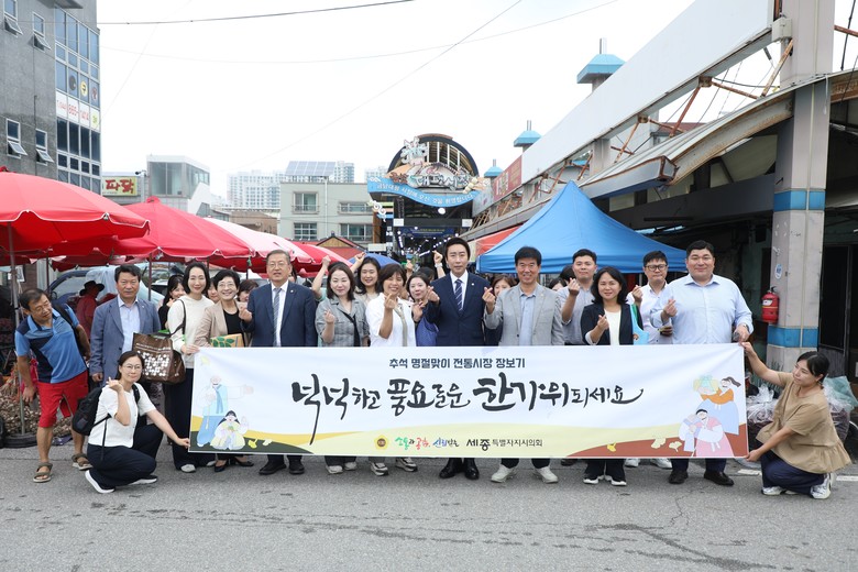 임채성 의장은 “전통시장은 오랜 시간 동안 정성으로 키워온 신선한 농산물과 건강한 먹거리를 만날 수 있는 곳”이라며 “세종시민 한분 한분의 소중한 발걸음이 우리 시장의 활기를 되살리고, 상인들에게 큰 힘이 된다”라고 당부했다.