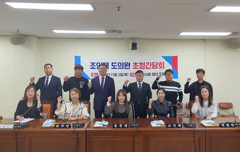 [경남 세계타임즈=최성룡 기자] 경상남도의회 조인제 의원(국민의힘, 함안2)은 2일 경남도의회 회의실에서 함안지역 청년 단체인 함안사랑청년포럼(회장 황미라) 회원 10여 명을 초청해 정책간담회를 개최했다고 밝혔다.