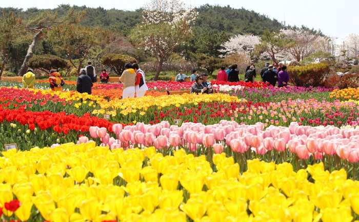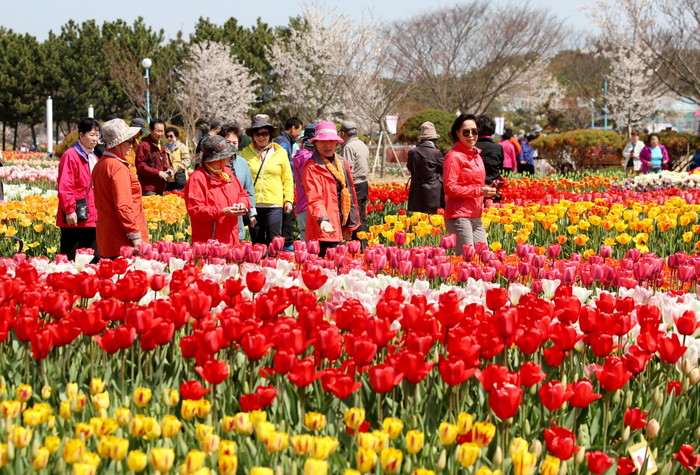 2002년과 2009년 안면도 국제 꽃 박람회가 펼쳐졌던 꽃지 해안공원에서 '태안 세계튤립꽃축제'가 19일 개장하여 많은 관광객들이 관람을 하고 있다.