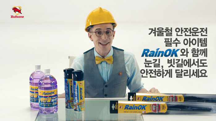 특히 ‘비정상회담’, ‘문제적남자’ 등에서 6개 국어를 유창하게 구사하며 ‘뇌섹남’ 이미지를 구축한 타일러가 제품 설명에 필요한 한자어 풀이부터 그래프 해석까지 능숙하게 해내며 눈길을 끌었다. 그 외에도 타일러는 불스원 연구소에서 공수한 물방울 발수각 측정 기계를 직접 시연하고, 제품 사용 전후 비교 실험을 진행하는 등 레인OK 제품의 뛰어난 성능을 다양한 방법으로 보여주며 시청자의 이해를 돕는다.